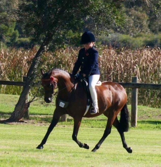 Bay Gelding 14.2h Maverick as he is known is registered Riding Pony and Arabian Riding Pony, Mav has been shown in many states in Australia, he has won lots and is an ideal schoolmaster for most riders. His sire: Vale Park Spotlight, Dam: Sanlirra Classique